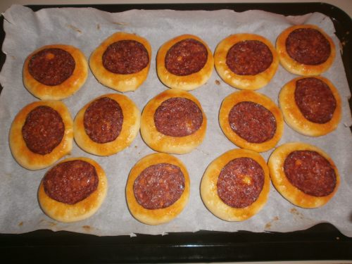 3.Nakon toga, tijesto razviti na debljinu od otprilike pola centimetra, pa modlom ili čašom vaditi kolutiće malo veće od obima kulena.