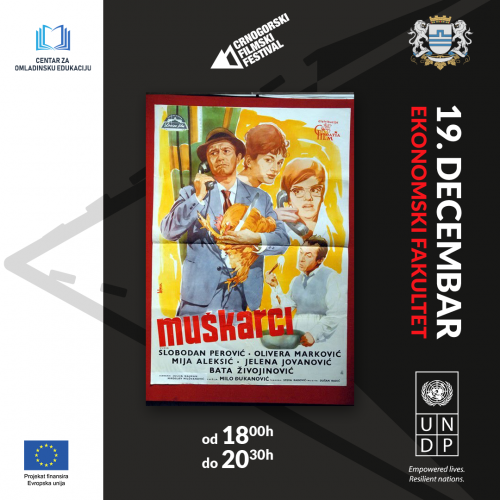 U četvrtak, 19.decembra, u isto vrijeme, biće prikazan film ,,Muškarci” u režiji Mila Đukanovića. Moderator je Vuk Perović. Glavne uloge tumače Slobodan Perović, Olivera Marković, Mija Aleksić, Jelena Žigon, Velimir Bata Živojinović. Žena građanina Đoka Lazića prezaposlena je, a on ne može da pronađe kućnu pomoćnicu i zato preuzima dio kućnih obaveza svoje žene. Kako vrijeme odmiče, Đoko se sve više ponaša kao domaćica, a njegova žena poprima njegovo dotadašnje ponašanje. Zamjena njihovih uloga prouzrokuje mnoge humoristične zgode.