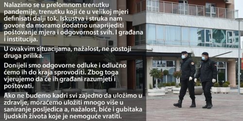 – Nalazimo se u prelomnom trenutku pandemije, trenutku koji će u velikoj mjeri definisati dalji tok. Iskustva i struka nam govore da moramo dodatno unaprijediti poštovanje mjera i odgovornost svih. Građana i institucija. U ovakvim situacijama, nažalost, ne postoji druga prilika. Donijeli smo odgovorne odluke i odlučno ćemo ih do kraja sprovoditi. Zbog toga vjerujemo da će ih građani razumjeti i poštovati. Ako ne budemo kadri svi zajedno da uložimo u zdravlje, moraćemo uložiti mnogo više u saniranje posljedica a, nažalost, biće i gubitaka ljudskih života koje je nemoguće vratiti – poručuju iz Nacionalnog koordinacionog tijela za zarazne bolesti.