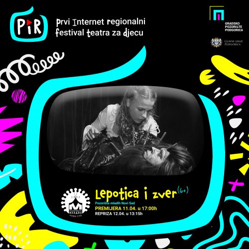 Četvrtog dana Prvog internet regionalnog festivala teatra za djecu – PIR festivala, danas na YouTube kanalu Gradskog pozorišta Podgorica, sa početkom u 17 sati, biće izvedena predstava ,,Lepotica i zver” (6+), Pozorišta mladih Novi Sad.