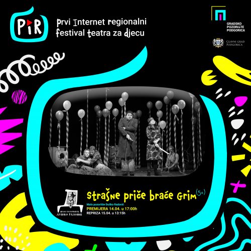 Sedmog dana Prvog internet regionalnog festivala teatra za djecu – PIR festivala, danas na YouTube kanalu Gradskog pozorišta Podgorica, sa početkom u 17h, biće izvedena predstava ,,Strašne priče braće Grim” (5+), Malog pozorišta Duško Radović iz Beograda.