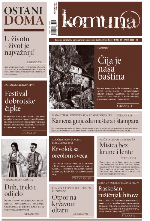 Novi broj časopisa za lokalnu samoupravu i njegovanje baštine “Komun@” odštampan je i već se nalazi na prodajnim mjestima širom Crne Gore. I ovoga puta Komun@ donosi veliki broj interesantnih tekstova sa cijelog područja Crne Gore među kojima je tekst Radoice Luburića posvećen novonastaloj situaciji pod naslovom “U životu –život je najvažniji” sa sloganom #Ostani doma, čime se Komun@ priključila programu Ministarstva kulture pod nazivom