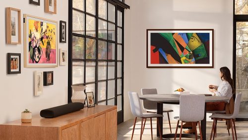 The Frame je nesvakidašnji televizor visoke rezolucije i izvanrednog kvaliteta, koji pretvara svaki dom u pravu galeriju, zahvaljujući umjetničkom režimu, luksuznom dizajnu i okviru u boji po izboru. The Frame televizor dolazi u crnoj, bijeloj i bež boji i savršeno se uklapa u svaki enterijer, bilo da je uključen ili isključen, a specijalni režim omogućava prikazivanje umjetničkih dela iz jedinstvene Samsung Art Store prodavnice. Korisnici mogu sami da izaberu koje će djelo, od klasičnih umjetničkih kolekcija i fotografija, pa sve do moderne i apstraktne umjetnosti, krasiti njihov uređaj kada je isključen.