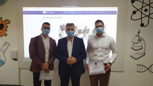 Dekan Medicinkog fakulteta u Podgorici prof. dr Miodrag Radunović uručio je zahvalnice kompaniji Hoffmann – La Roche, dr Milošu Ičeviću, direktoru Hoffmann-La Roche Crna Gora i dr Suadu Šabanoviću, specijalisti za proizvode i stratešku analizu.