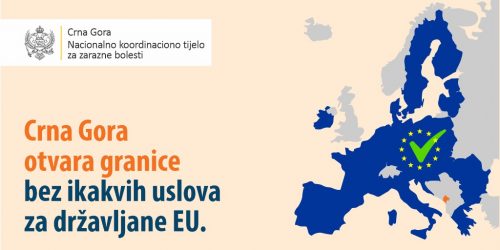 Crna Gora danas otvara granicu za države Evropske Unije, saopšteno je iz Vlade Crne Gore.