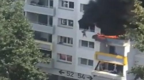Heróico comportamiento en este barrio de #Grenoble. Dos niños de 3 y 10 años están atrapados por las llamas. No hay más salvación que tirarse. Los vecinos piden al mayor que lance al pequeño, a quien recogen en sus brazos. Después, se tira el más mayor. Los dos están a salvo. pic.twitter.com/Uqqd2B2qTg