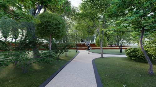 Ulaz iz Ulice Ivana Milutinovića biće oplemenjen špalirom od čempresa i živom ogradom, dok će kompletan prostor biti opremljen savremenim parkovskim mobilijarom – klupama, ležaljkama i korpama za otpatke i pokriven sistemom za navodnjavanje.