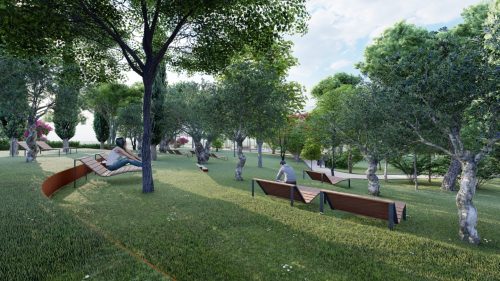 Rekonstrukcija i dopuna postojeće parkovske površine obuhvataće ozelenjavanje i dopunu sadržaja. U centalnom dijelu ovog parka biće izgrađen ljetnjikovac odnosno nadrstešnica modernog dizajna namijena za jogu i miran odmor. Prostor za sjedenje biće izgrađen na podlozi od dekinga, dok će nove pješačke staze biti nasute rizlom. Kako se radi o terenu koji je većim dijelom pod nagibom, biće izvršeno njegovo terasiranje, a prostor će biti ozelenjen gustim sklopom maslina i čempresa.