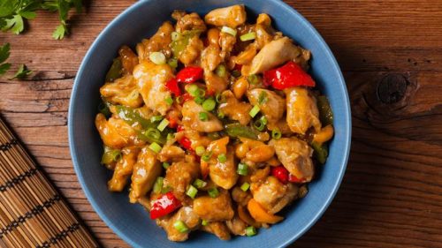 5.Piletinu i kikiriki vratite u tiganj i sve dobro pomiješajte sa prazilukom.