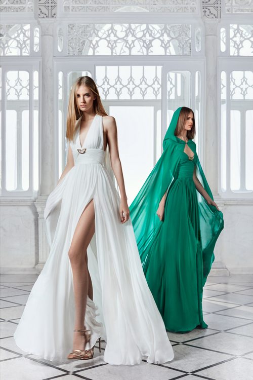 Posmatrajući ovu kolekciju, čini se kao da je Sab feniks koji se izdigao iz pepela. Glamur je tu, čak i u poslovnim varijantama, prelijepe boje, kroj i materijali. Odlučio se za odijela, kombinezone i haljine u crvenoj, bijeloj, crnoj, zelenoj, kamel nijansi, ali i životinjski print. Sitnim zvjezdanim detaljima od dame je napravio zvijezdu večeri.