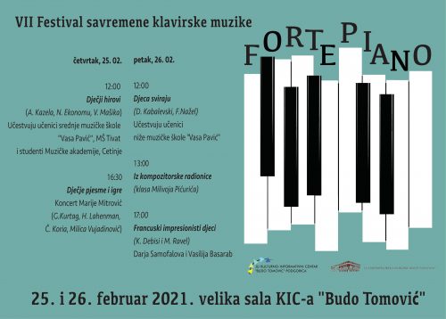 Festival savremene klavirske muzike Forte piano biće održan sedmi put zaredom u velikoj sali Kulturno-informativnog centra „Budo Tomović“ 25. i 26. februara, saopšteno je iz KIC-a.