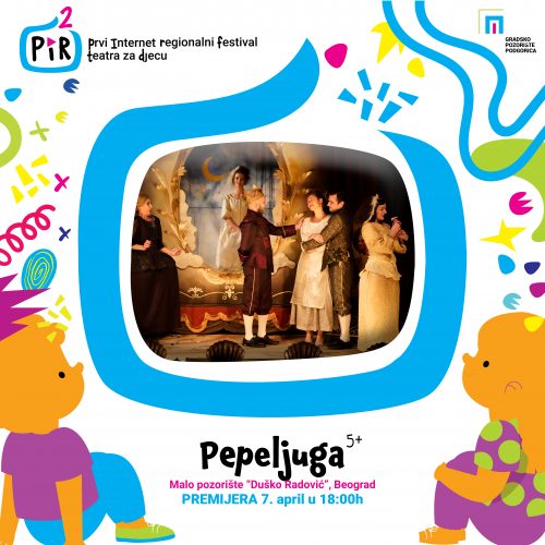 Sedmog dana Prvog Internet regionalnog festivala teatra za djecu – PIR 2 FESTIVALA, danas na YouTube kanalu Gradskog pozorišta Podgorica, sa početkom u 18h, biće izvedena predstava ,,Pepeljuga”(5+), Malog pozorišta ,,Duško Radović” iz Beograda, koju je po tekstu Aleksandara Popovića, režirao Stevan Bodroža, saopšteno je iz PR službe Gradskog pozorišta Podgorica.