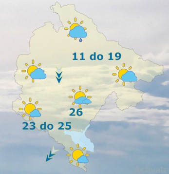 Danas će u Crnoj Gori u južnim i centralnim predjelima biti malo do umjereno oblačno sa dužim sunčanim intervalima. Na sjeveru promjenljivo oblačno, a tokom jutra ponegdje moguća slaba kiša. Vjetar mjestimično umjeren do jak, sjeverni i sjeveroistočni. Najviša dnevna temperatura vazduha od 11 do 26 stepeni, saopšteno je iz Zavoda za hidrometeorologiju.