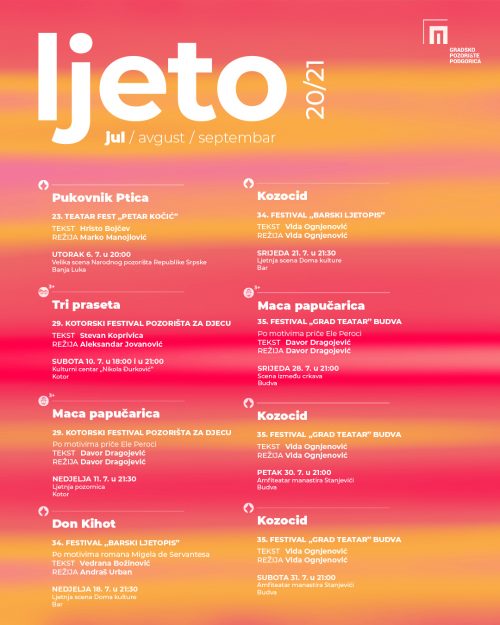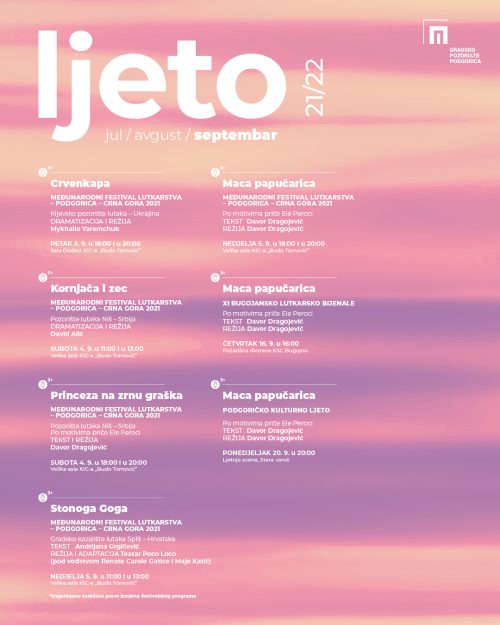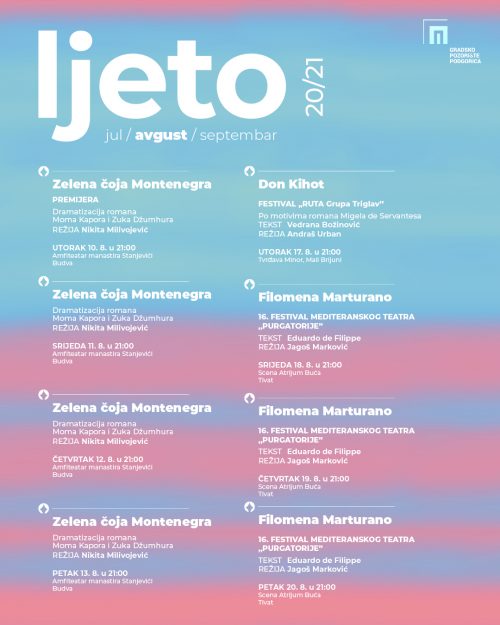 NaslovnicaARTREPERTOAR GRADSKOG POZORIŠTA: Premijera ,,Zelene čoje Montenegra" u avgustu ARTPREPORUKA REPERTOAR GRADSKOG POZORIŠTA: Premijera ,,Zelene čoje Montenegra” u avgustu 1.07.2021. u 15:15 Dijeliti FacebookTwitterPinterestWhatsApp Gradsko pozorište Podgorice danas je predstavilo tromjesečni repertoar. Premijera predstave ,,Zelena čoja Montenegra” biće oodržana 10. avgusta u Budvi. Tagsgradsko pozorište podgorica Dijeliti FacebookTwitterPinterestWhatsApp Prethodni članakUCG: Podrška inicijativi za osnivanje Instituta za urbanizam i arhitekturu na Arhitektonskom fakultetuNaredni članakPODGORICA: Sjutra dio grada bez vode POVEZANI TEKSTOVI DRUŠTVO AMSCG: Povoljni uslovi za vožnju 11.12.2025. u 7:59 PREPORUKA EVROKUP: Košarkaši Budućnost Volija savladali London Lajonse 10.12.2025. u 21:06 MAGAZIN Eagle Hills Mohameda Alabara završio toranj u Abu Dhabiju za rekordnih 12 dana, koristeći modularnu tehnologiju 10.12.2025. u 20:08 POPULARNO AMSCG: Povoljni uslovi za vožnju 11.12.2025. u 7:59 EVROKUP: Košarkaši Budućnost Volija savladali London Lajonse 10.12.2025. u 21:06 Eagle Hills Mohameda Alabara završio toranj u Abu Dhabiju za rekordnih 12 dana, koristeći modularnu tehnologiju 10.12.2025. u 20:08 METEO: Sjutra do 19 stepeni 10.12.2025. u 18:14 Učitati više