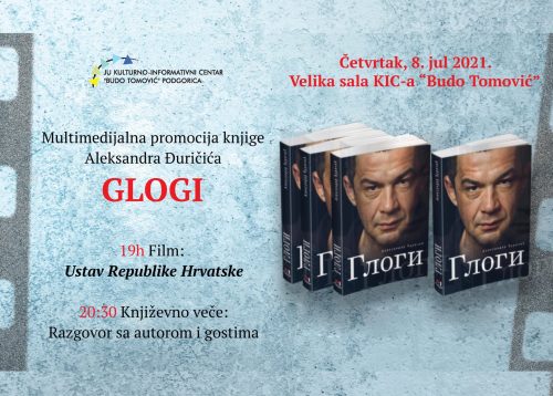 KIC priprema multimedijalnu promociju nove knjige Aleksandra Đuričića ,,Glogi” o jedinstvenom, velikom glumcu Nebojši Glogovcu, 8. jula. U okviru večeri organizovaćemo projekciju posljednjeg filma u kojem je glumio Glogovac ,,Ustav Republike Hrvatske” reditelja Rajka Grlića.