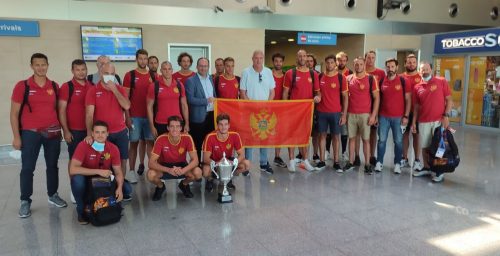 Zlatne momke na podgoričkom aerodormu dočekali su predsjednik VPSCG dr Đuro Marić i predsjednik Skupštine VPSCG Mirza Krcić.