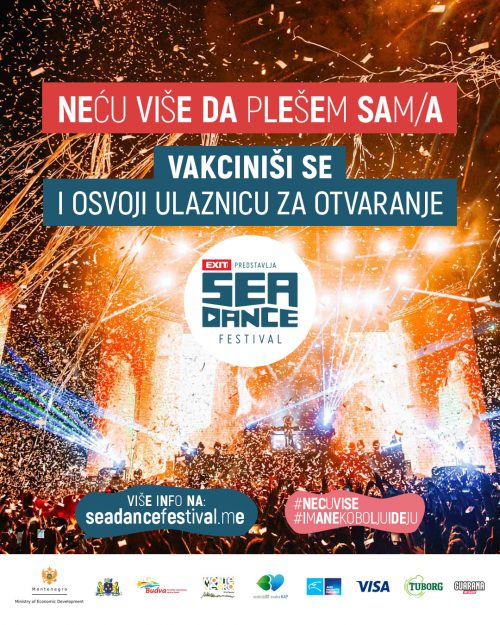 Svi mladi koji se od 18. avgusta vakcinišu na jednoj od zvaničnih lokacija širom Crne Gore i ostave svoje lične podatke (ime i prezime, godinu rođenja, mesto prebivališta i e-mail), dobiće jednodnevne ulaznice za otvaranje Sea Dance festivala, 26. avgusta, kada će nastupiti jedni od vodećih hitmejkera današnjice Meduza, virtuozni umjetnik iz Amsterdama srpsko-holandskog porijekla Satori, Bajaga i Instruktori i bend Parampaščad. Akcija će trajati do 24. avgusta ili do isteka zaliha.