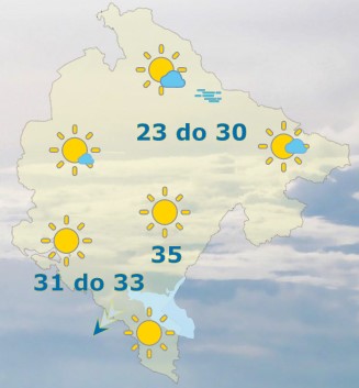 Danas će u Crnoj Gori biti pretežno sunčano. Na sjeveru, ujutru, po kotlinama ponegdje magla ili povećana niska oblačnost. Vjetar sjevernih smjerova, slab do umjeren, tokom jutra ili prijepodneva, na jugu pojačan. Najviša dnevna temperatura vazduha od 22 do 35 stepeni, saopšteno je iz Zavoda za hidrometeorologiju.