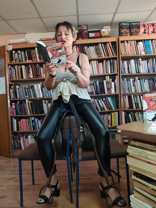 Sem pomenutih apatinskih prvih nastupa, uslijedio je Novi Sad, knjižara-klub Nublu, u kojem je autorka izvela performans „Gospodarsko-ropski diskurs iliti Klečanje na kukuruzu“ u formi svojevrsne tribine, potom performistički karavan, Kula „Idemo u Kulu da jašemo mulu“, gdje je izazvala pravo oduševljenje među publikom, čitanjem sa sedla, starog 150 godina, zatim ulični performans kod spomenika Lazi Kostiću, u centru Sombora „Dunđerska-sunđerska iliti Da sam ja muško“.