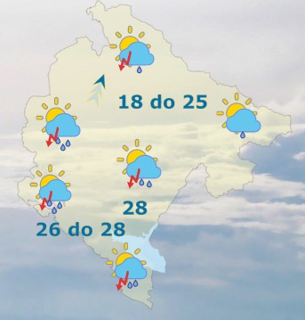 Danas će u Crnoj Gori biti promjenljivo oblačno, povremeno kiša pljuskovi i grmljavina. Tokom noći se očekuje više padavina, naročito u južnim i centralnim predjelima, gdje su lokalno moguće umjerene do obilne količine. Vjetar umjeren, u sjevernim predjelima pojačan i jak južnih smjerova. Najviša dnevna temperatura vazduha od 18 do 28 stepeni, saopšteno je iz Zavoda za hidrometeorologiju.