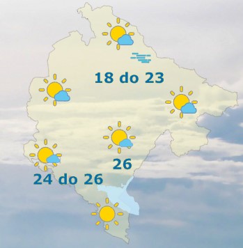 Danas će u Crnj Gori biti sunčano, uz povremeno malu ili umjerenu oblačnost. Na sjeveru, ujutru, po kotlinama magla. Vjetar slab do umjeren, promjenljivog smjera. Najviša dnevna temperatura vazduha od 18 do 26 stepeni, saopšteno je iz Zavoda za hidrometeorologiju.