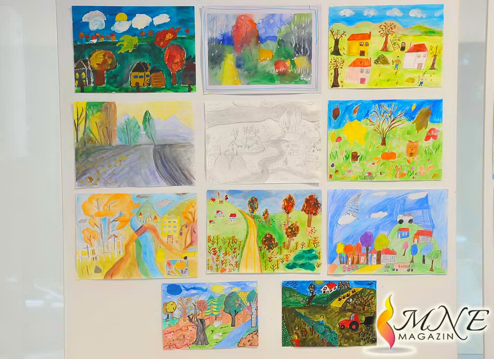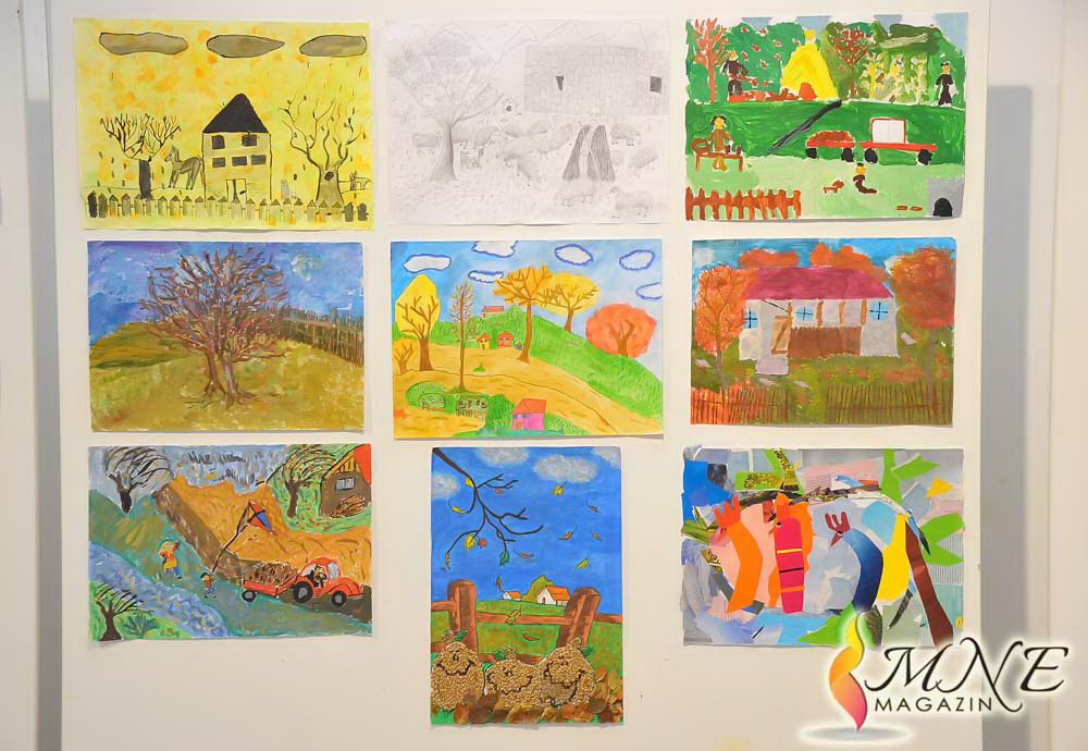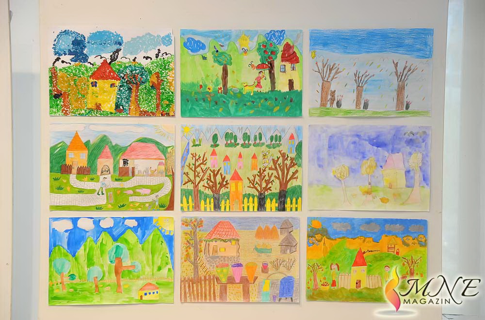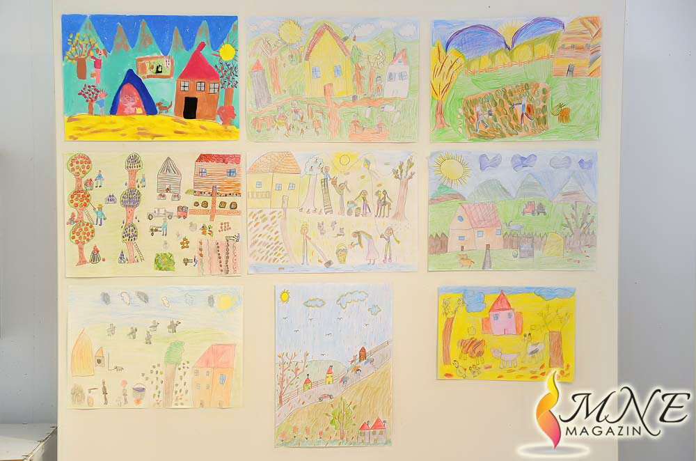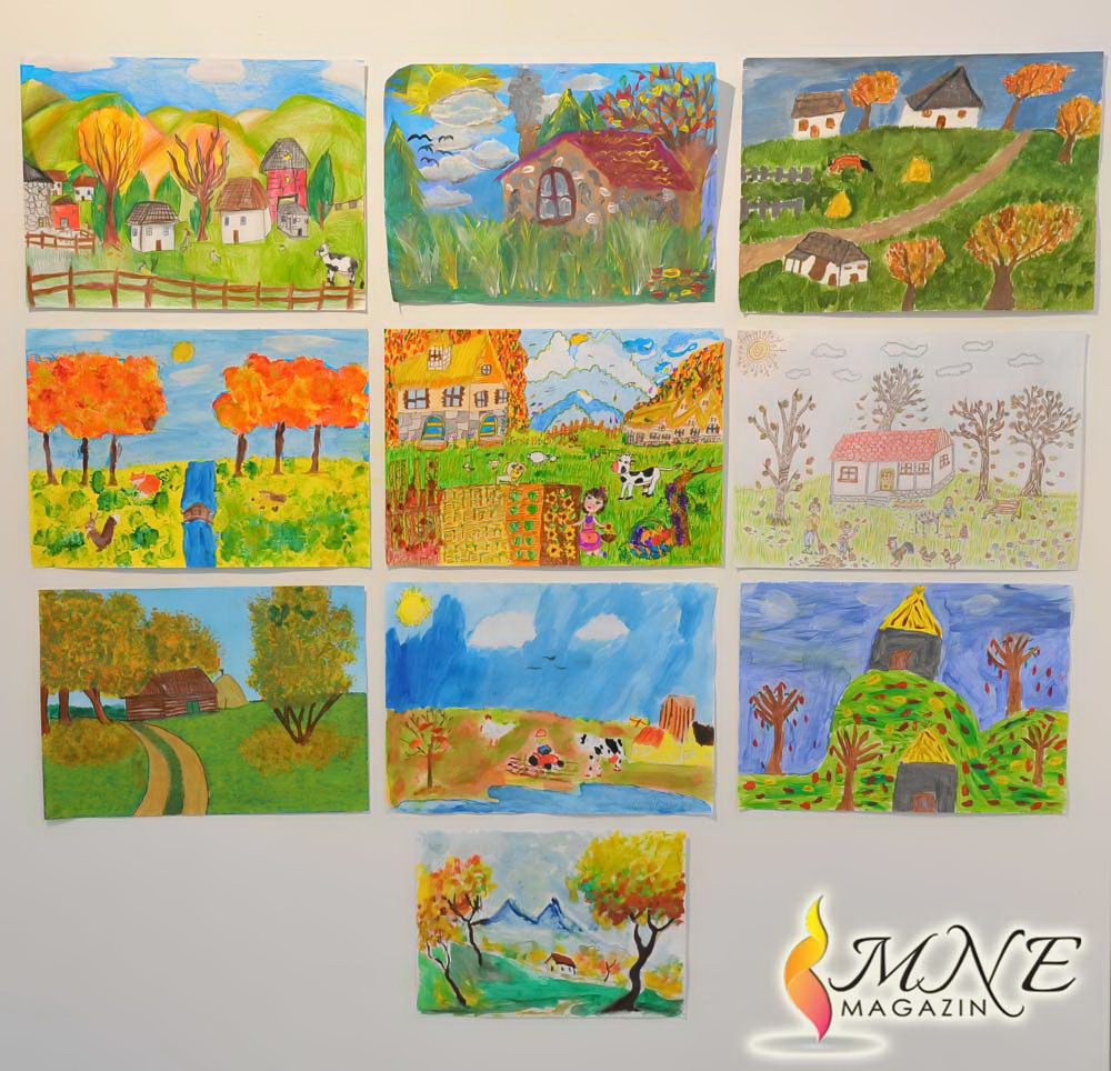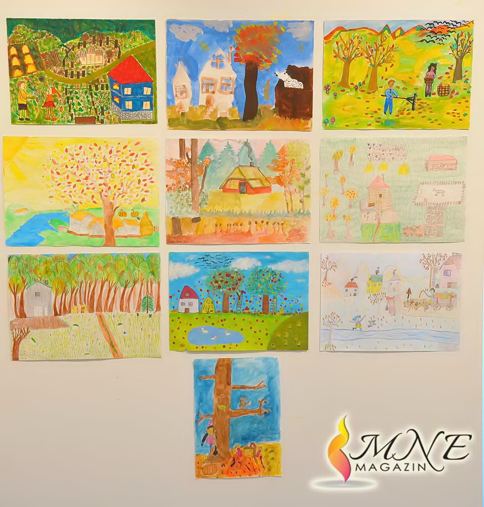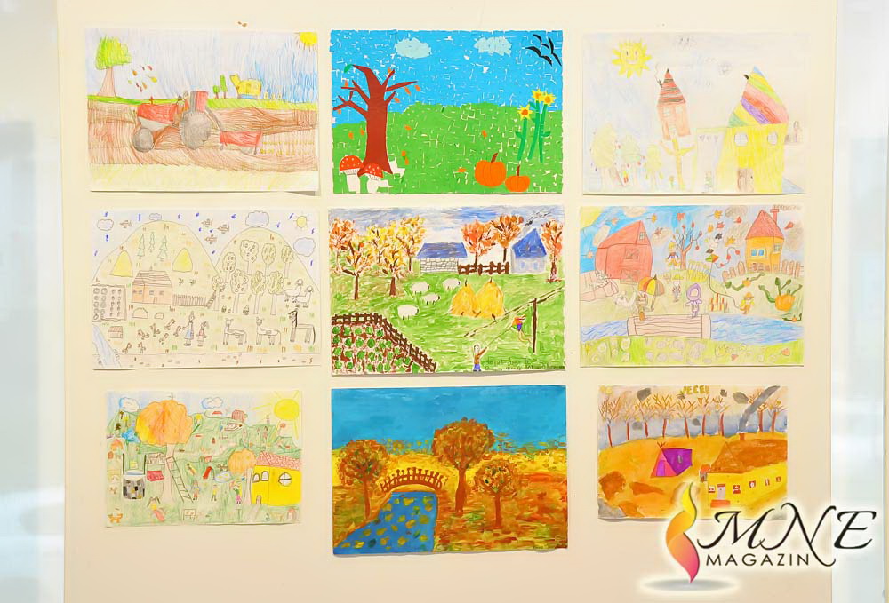 U holu KIC-a izloženo je oko 100 crteža učenika od prvog do petog razreda osnovnih škola Crne Gore. To su radovi koji su, u organizaciji Nacionalne turističke organizacije Crne Gore, a u saradnji sa Ministarstvom prosvjete, nauke, kulture i sporta odabrani na septembarskom konkursu za najbolji likovni rad na temu ,,Jesen na selu”, namijenjen upravo učenicima osnovnih škola od prvog do petog razreda.