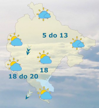 Danas će u Crnoj Gori u južnim predjelima biti promjenljivo oblačno sa sunčanim intervalima i uglavnom suvo, na sjeveru umjereno do potpuno oblačno uz uslove za ponegdje slabe padavine. Vjetar mjestimično umjeren, ponegdje pojačan, sjeverni i sjeveroistočni, krajem dana i tokom noći pojačan i jak, na udare i olujne jačine. Najviša dnevna temperatura vazduha od 5 do 20 stepeni, saopšteno je iz Zavoda za hidrometeorologiju.