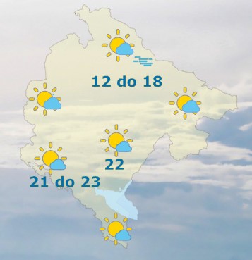 Danas će u Crnoj Gori biti malo do umjereno oblačno, uz dosta sunčanih intervala. Na sjeveru, ujutru po kotlinama kratkotrajno magla ili sumaglica, a tokom dana promjenljiva oblačnost. Vjetar slab do umjeren promjenljivog smjera. Najviša dnevna temperatura vazduha od 12 do 23 stepena, saopšteno je iz Zavoda za hidrometeorologiju.
