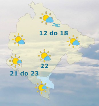 Danas će u Crnoj Gori biti pretežno sunčano, uz slab do umjeren razvoj oblačnosti. Na sjeveru, ujutru ili tokom prijepodneva po kotlinama magla i niska oblačnost. Vjetar slab do umjeren, promjenljivog smjera. Najviša dnevna temperatura vazduha od 12 do 23 stepena, saopšteno je iz Zavoda za hidrometerologiju.