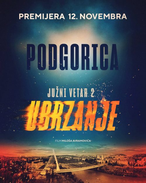 Podgorička premijera filma Miloša Avramovića ,,Južni vetar: Ubrzanje” zakazana je za petak, 12. novembar u ,,Cineplexxu” u TC ,,Delta city”.