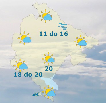 Danas će u Crnoj Gori biti promjenljivo oblačno, sa sunčanim intervalima. Na sjeveru ujutru ili prijepodne po kotlinama magla. Vjetar slab promjenljivog smjera, Na primorju prijepodne ponegdje umjeren do pojačan istočnih smjerova. Najviša dnevna temperatura vazduha od 11 do 21 stepen, saopšteno je iz Zavoda za hidrometeorologiju.