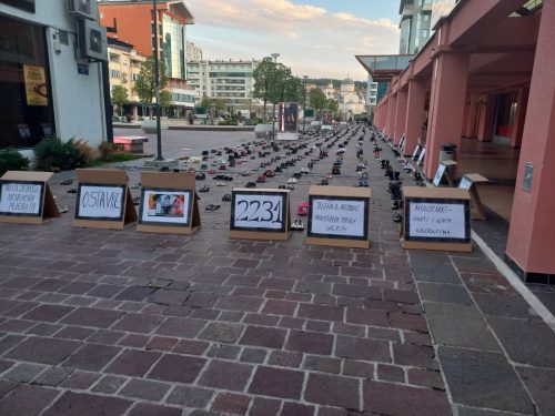 Na Rimskom trgu ispred Ministarstva zdravlja osvanulo je 2.231 je par obuće, koji prikazuje koliko je ljudi u našoj zemlji preminulo od koronavirusa, piše Pobjeda.