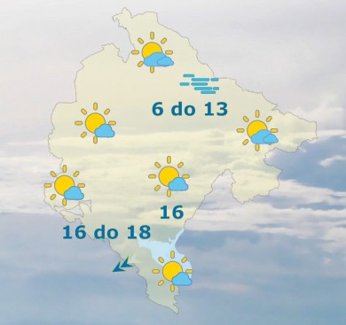 Danas će u Crnoj Gori biti pretežno sunčano. Na sjeveru prijepodne magla ili povećana niska oblačnost. Vjetar slab do umjeren promjenljivog smjera, prijepodne na jugoistoku umjeren do pojačan sjeveroistočni. Najviša dnevna temperatura vazduha od 6 do 18 stepeni, saopšteno je iz Zavoda za hidrometeorologiju.