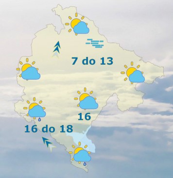 Danas će u Crnoj Gori prijepodne biti promjenljivo oblačno, uz nešto sunčanih intervala i uglavnom suvo, a tokom jutra na sjeveru po kotlinama magla. Od sredine dana pretežno oblačno, uglavnom, krajem dana i tokom noći kiša, više u južnim i centralnim predjelima. Vjetar južni i jugoistočni, slab do umjeren, u drugom dijelu dana i tokom noći mjestimično pojačan. Najviša dnevna temperatura vazduha od 7 do 18 stepeni, saopšteno je iz Zavoda za hidrometeorologiju.