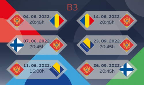 Takmičenje u grupi B3 „hrabri sokoli“ počinju u subotu, 4. juna u 20:45 sati duelom sa selekcijom Rumunije na Gradskom stadionu u Podgorici.