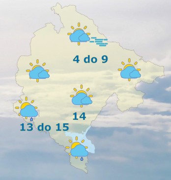 Danas će u Crnoj Gori biti umjereno do pretežno oblačno, ponegdje je moguća slaba kratkotrajna kiša, uglavnom, u južnim predjelima. Na sjeveru ujutru po kotlinama magla ili niska oblačnost. Vjetar slab do umjeren promjenljivog smjera. Najviša dnevna temperatura vazduha od 6 do 16 stepeni, saopšteno je iz Zavoda za hidrometeorologiju.