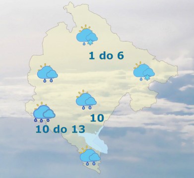 Danas će u Crnoj Gori biti pretežno oblačno sa kišom, lokalno moguć i pljusak sa grmljavinom, na sjeveru sa snijegom i susnježicom, a u nižim predjelima tokom dana ponegdje kišom. Vjetar slab do umjeren, promjenljivog smmjera. Najviša dnevna temperatura vazduha od 1 do 13 stepeni, saopšteno je iz Zavoda za hidrometeorologiju.
