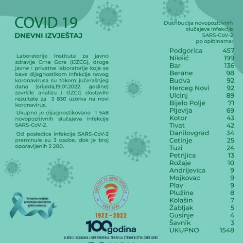 NaslovnicaDRUŠTVOIJZCG: Još 1548 novooboljelih od kovida, tri osobe preminule DRUŠTVOPREPORUKA IJZCG: Još 1548 novooboljelih od kovida, tri osobe preminule 20.01.2022. u 16:17 Dijeliti FacebookTwitterPinterestWhatsApp Dijeliti FacebookTwitterPinterestWhatsApp Prethodni članakKCCG: Rođeno sedam bebaNaredni članakCEDIS: U subotu, zbog radova na mreži, dio Herceg Novog tri sata bez struje POVEZANI TEKSTOVI PREPORUKA KVALIFIKACIJE ZA SP: Reprezentacija Crne Gore poražena od Grčke u Podgorici 2.03.2026. u 20:55 DRUŠTVO BANJALUKA: Preminulo dijete u vrtiću 2.03.2026. u 17:59 DRUŠTVO MOST NA ĐURĐEVIĆA TARI: Izmjena režima saobraćaja od srijede 2.03.2026. u 16:47 POPULARNO KVALIFIKACIJE ZA SP: Reprezentacija Crne Gore poražena od Grčke u Podgorici 2.03.2026. u 20:55 BANJALUKA: Preminulo dijete u vrtiću 2.03.2026. u 17:59 MOST NA ĐURĐEVIĆA TARI: Izmjena režima saobraćaja od srijede 2.03.2026. u 16:47 CZŽP: Osmomartovski marš 2026 – NE SLAVIMO. BORIMO SE! 2.03.2026. u 14:22 Učitati više