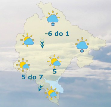Danas će u južnim predjelima Crne Gore biti promjenljivo oblačno sa dužim sunčanim intervalima, na sjeveru umjereno do pretežno oblačno, povremeno uz provijavanje slabog snijega i mećavu. Vjetar povremeno umjeren do jak, sjevernih smjerova. Najviša dnevna temperatura vazduha od -6 do 7 stepeni, saopšteno je iz Zavoda za hidrometeorologiju.