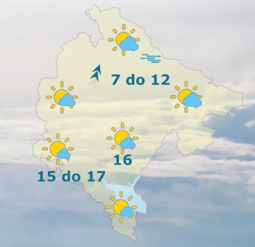 Danas će u Crnoj Gori biti promjenljivo oblačno, sa dužim sunčanim intervalima. Na sjeveru ujutru po kotlinama magla ili niska oblačnost. Vjetar slab do umjeren i promjenljiv, u sjevernim predjelima ponegdje umjeren do pojačan, južnih smjerova. Najviša dnevna temperatura vazduha od 7 do 17 stepeni, saopšteno je iz Zavoda za hidrometeorologiju.