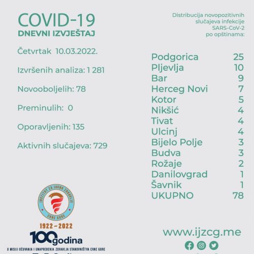 NaslovnicaDRUŠTVOIJZCG: Još 78 novozaraženih kovidom DRUŠTVOPREPORUKA IJZCG: Još 78 novozaraženih kovidom 11.03.2022. u 15:43 Dijeliti FacebookTwitterPinterestWhatsApp Tagsinstitut za javno zdravlje crne gorekorona virus Dijeliti FacebookTwitterPinterestWhatsApp Prethodni članakREPREZENTACIJA: Odbojkaši i odbojkašice saznali protivnike za kvalifikacije za EPNaredni članakKCCG: Životno ugrožena četiri kovid pacijenta POVEZANI TEKSTOVI DRUŠTVO HERCEG NOVI: Motorista udario dječaka na Šetalištu Pet Danica 25.02.2026. u 21:46 DRUŠTVO METEO: Sjutra do 19 stepeni 25.02.2026. u 20:53 DRUŠTVO GLAVNI GRAD: Pojačan nadzor i nulta tolerancija na nesavjesno postupanje prema životinjama 25.02.2026. u 19:15 POPULARNO HERCEG NOVI: Motorista udario dječaka na Šetalištu Pet Danica 25.02.2026. u 21:46 METEO: Sjutra do 19 stepeni 25.02.2026. u 20:53 GLAVNI GRAD: Pojačan nadzor i nulta tolerancija na nesavjesno postupanje prema životinjama 25.02.2026. u 19:15 STADION ,,CRVENE STIJENE” U NOVOM RUHU: Ulaganje u sportsku budućnost Tološa kroz partnerstvo Glavnog grada i FSCG 25.02.2026. u 17:41 Učitati više