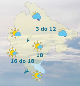 Danas će u južnim i centralnim predjelima Crne Gore biti malo do umjereno oblačno sa sunčanim intervalima, a na sjeveru pretežno oblačno, prijepodne ponegdje sa vrlo slabim padavinama. Vjetar slab do umjeren, tokom noći mjestimično i pojačan sjevernih smjerova. Najviša dnevna temperature vazduha od 3 do 18 stepeni, saopšteno je iz Zavoda za hidrometeorologiju.