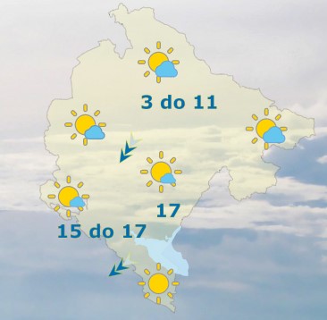 Danas će u Crnoj Gori biti pretežno sunčano. Ujutru u južnim, a u sjevernim predjelima i prijepodne, mjestimično umjerana do povećana oblačnost. Vjetar povremeno umjeren do jak sjevernih smjerova. Najviša dnevna temperature vazduha od 3 do 17 stepeni, saopšteno je iz Zavoda za hidrometeorologiju.