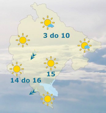 Danas će u Crnoj Gori biti pretežno sunčano. Vjetar slab do umjeren, ponegdje povremeno pojačan i jak, sjeverni i sjeveroistočni. Najviša dnevna temperature vazduha od 3 do 16 stepeni, saopšteno je iz Zavoda za hidrometeorologiju.
