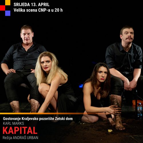 Predstava ,,Kapital”, prema tekstu Karla Marksa, u režiji Andraša Urbana, u produkciji Kraljevskog pozorišta ,,Zetski dom” biće izvedena u srijedu, 13. aprila na Velikoj sceni Crnogorskog narodnog pozorišta u 20 sati, saopšteno je iz PR službe Crnogorskog narodnog pozorišta.
