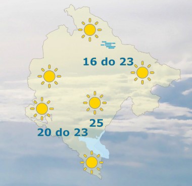 Danas će u Crnoj Gori biti pretežno sunčano. Na sjeveru, tokom jutra, po kotlinama moguća kratkotrajno magla. Vjetar slab do umjeren, promjenljivog smjera. Najviša dnevna temperatura vazduha od 16 do 25 stepeni, saopšteno je iz Zavoda za hidrometeorologiju.