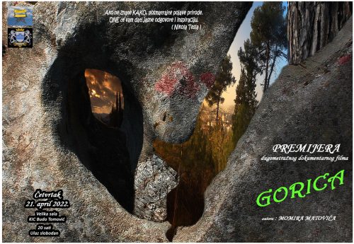 Premijera dugometražnog dokumentarnog filma ,,Gorica“ istaknutog crnogorskog filmskog stvaraoca Momira Matovića o jednom od najposjećenijih mjesta u našem Glavnom gradu biće organizovana u četvrtak, 21. aprila, u Kulturno-informativnom centru ,,Budo Tomović”, od 20 sati, saopšteno je iz PR službe KIC-a.