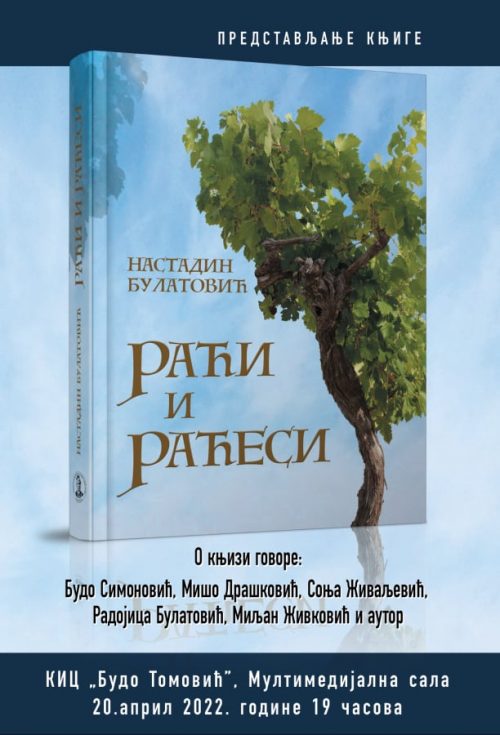 Knjiga autora Nastadina Bulatovića „Raći i Raćesi“ biće predstavljena u srijedu, 20.aprila, u Multimedijalnoj sali KIC-a „Budo Tomović“, od 19 sati, saopšteno je iz PR službe KIC-a.