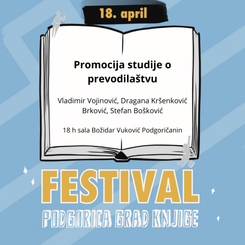 Festival književnosti ,,Podgorica – grad knjige” počinje večeras (18 sati) u Narodnoj biblioteci ,,Radosav Ljumović” (sala Božidar Vuković Podgoričanin), a program koji će ga otvoriti predstavlja promociju studije o prevodilaštvu ,,Brda i ćilimi”. Studija je nastala u okviru projekta Collider, gdje kao partneri učestvuju Glavni grad Podgorica (Sekretarijat za kulturu i sport) i Narodna biblioteka ,,Radosav Ljumović”, saopšteno je iz ove ustanove, saopšteno je iz PR službe NB ,,Radosav Ljumović”.