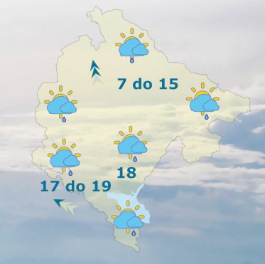Danas će u Crnoj Gori biti umjereno do potpuno oblačno, povremeno i mjestimično slaba do umjerena kiša, nešto češće u južnim i centralnim predjelima. Vjetar slab do umjeren, na primorju i u sjevernim predjelima pojačan, južnih smjerova. Najviša dnevna temperatura vazduha od 7 do 19 stepeni, saopšteno je iz Zavoda za hidrometeorologiju.